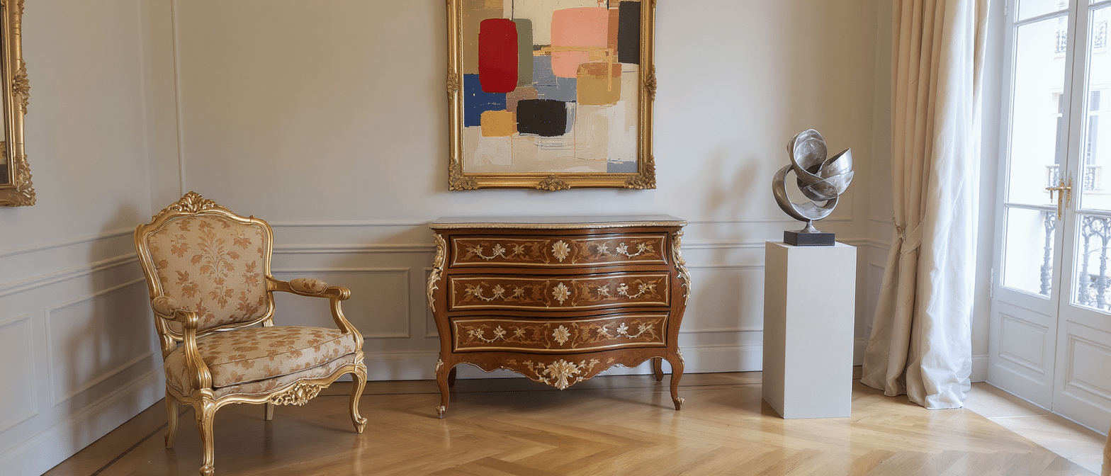 Un family office parisien fictif — “Beauvau Patrimoine” — aborde l’événement avec une grille en trois temps. D’abord, filtrer les œuvres originales au meilleur ratio qualité/prix parmi les sièges et commodes, cœurs de marché robustes; ensuite, cibler deux entrées d’art contemporain (une sculpture métal et une peinture abstraite) pour ancrer le discours “dialogue des époques”; enfin, conserver une réserve pour une pièce d’art multimédia à fort potentiel muséal. Ce portefeuille mixte répond à la double exigence de diversification et de soutenabilité du risque.