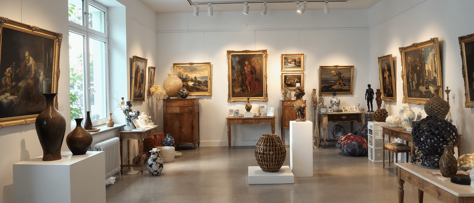 La scénographie fait dialoguer panneaux peints, bronzes et œuvres techniques au sein d’ensembles volontairement denses. Des assises régence encadrent une toile gestuelle; une sculpture contemporaine en acier répond à une commode à ressaut; une vidéo discrète (art multimédia) introduit un contrepoint lumineux. Cette grammaire d’accrochage, où chaque pièce « écoute » l’autre, confirme que l’harmonie ne relève pas du mimétisme mais de la tension féconde entre matériaux, couleurs et échelles.